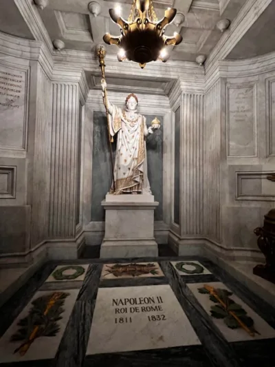 В 1840, согласно своему завещанию, здесь был перезахоронен с острова Святой Елены Наполеон Бонапарт, поэтому отныне это место так же связано и с ним.